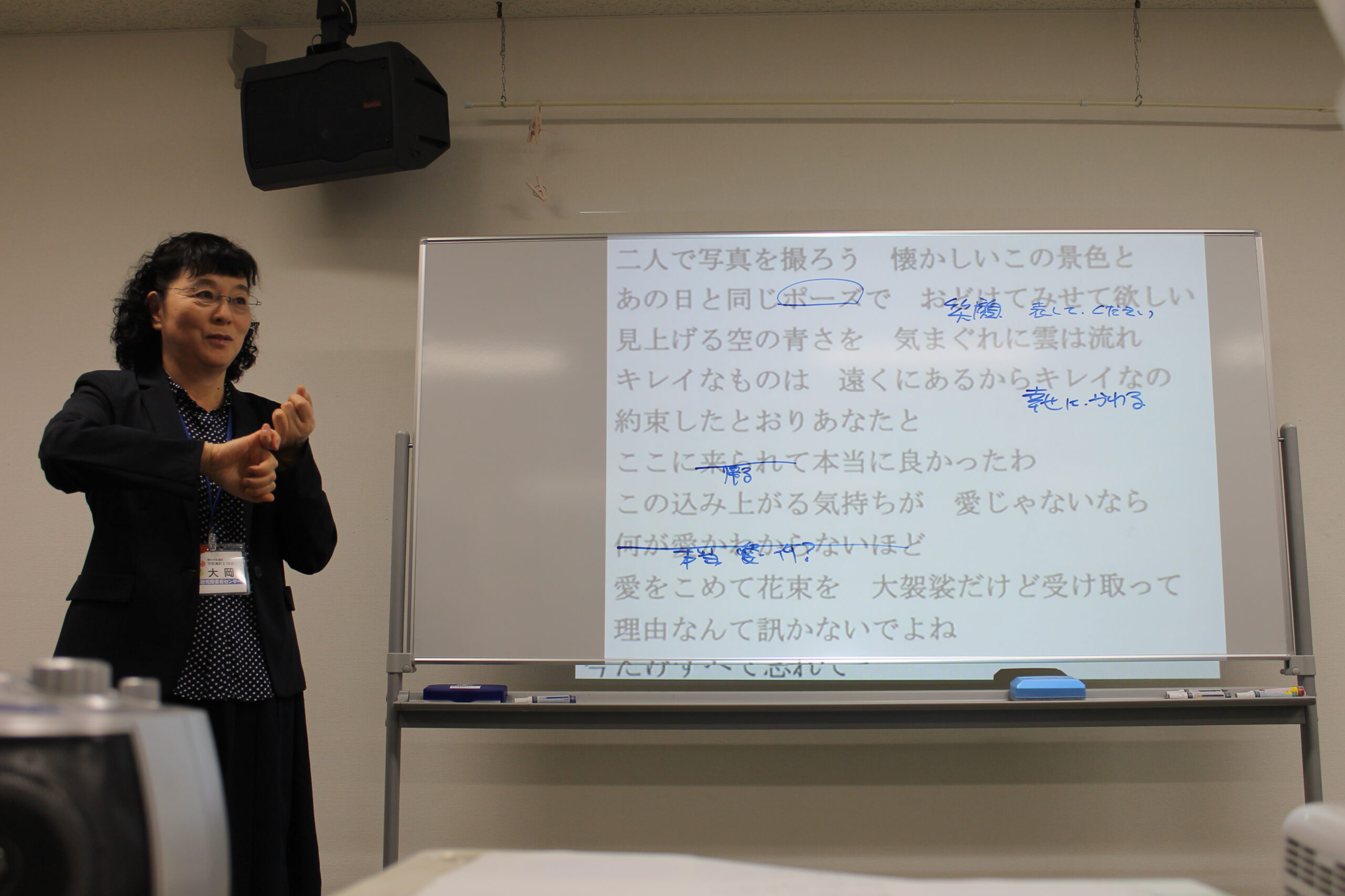 歌詞を手話通訳する様子