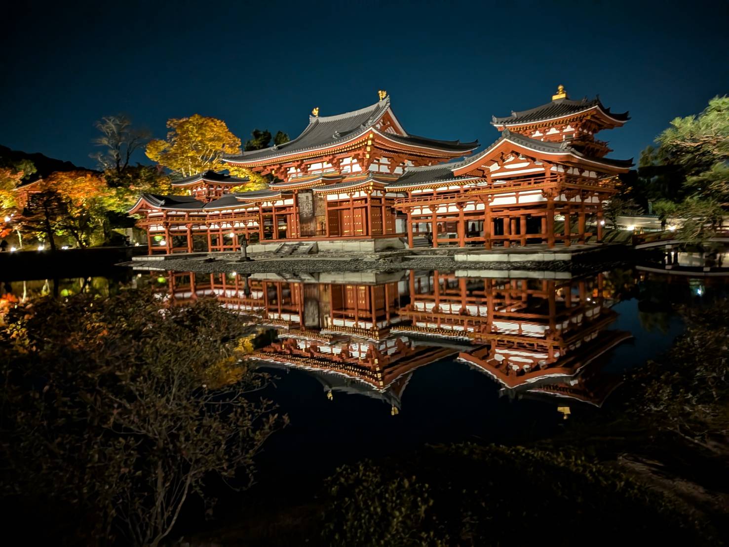 「宇治市の平等院ライトアップ」ー大岡さんが大学時代の友人と旅行をした際のお気に入りの1枚。水鏡が幻想的です。