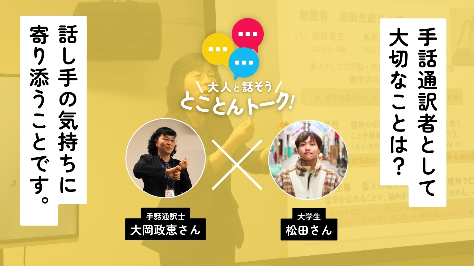 手話のお仕事の実際のトコロって?手話サークルに通う大学生が、キャリア30年の手話通訳士・大岡さんにとことん聞いてきた。